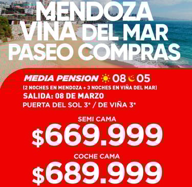 8 días / 5 noches (2 en Mendoza + 3 en Viña del Mar).