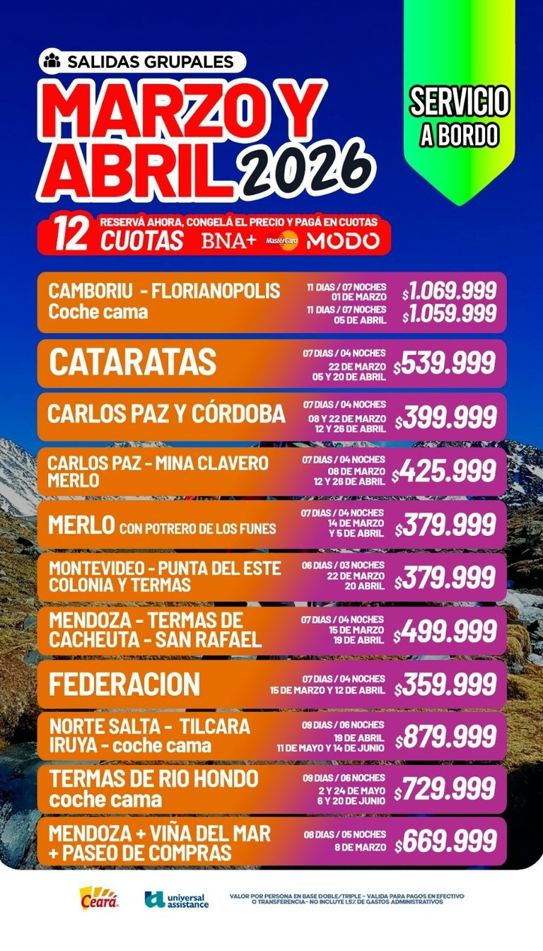 ¡MARZO Y ABRIL 2026: TU PRÓXIMO DESTINO ESTÁ ACÁ!