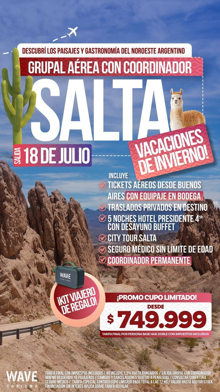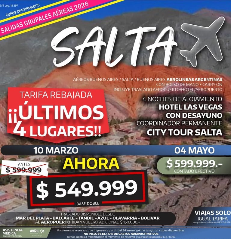 ¡ÚLTIMOS 4 LUGARES A SALTA! TARIFA REBAJADA